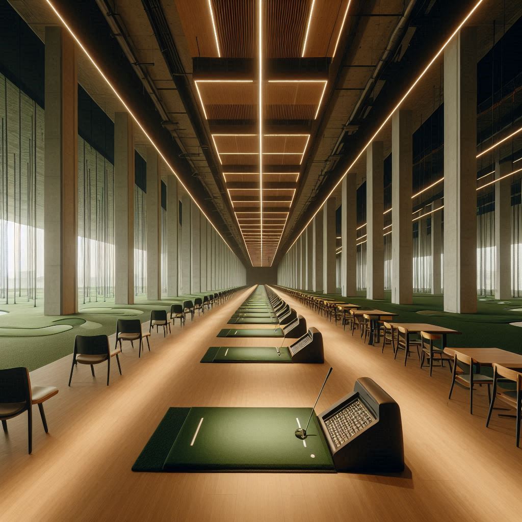 실내는 전체적으로 넓고 깔끔했습니다. 타석은 12개로 구성되어 있었으며, 각 타석마다 스크린과 스윙 분석 장비가 설치되어 있었습니다. 천장이 높고 조명이 일정하게 비춰 공의 궤적이 끝까지 선명하게 보였습니다. 타석 간 간격이 충분히 확보되어 있어 옆 사람의 스윙이 신경 쓰이지 않았고, 매트의 탄성이 일정해 밸런스를 잡기 좋았습니다. 벽면은 흡음재로 마감되어 타구음이 부드럽게 울렸고, 온도와 습도 조절이 일정해 쾌적했습니다. 조명이 따뜻한 색감으로 조정되어 눈의 피로감이 적었고, 바닥은 정돈된 상태를 유지했습니다. 퍼팅 연습 구역이 별도로 마련되어 있었으며, 클럽 정리대와 수납함도 깔끔하게 배치되어 있었습니다. 전체적으로 정돈된 구조와 안정된 분위기가 인상적이었습니다.